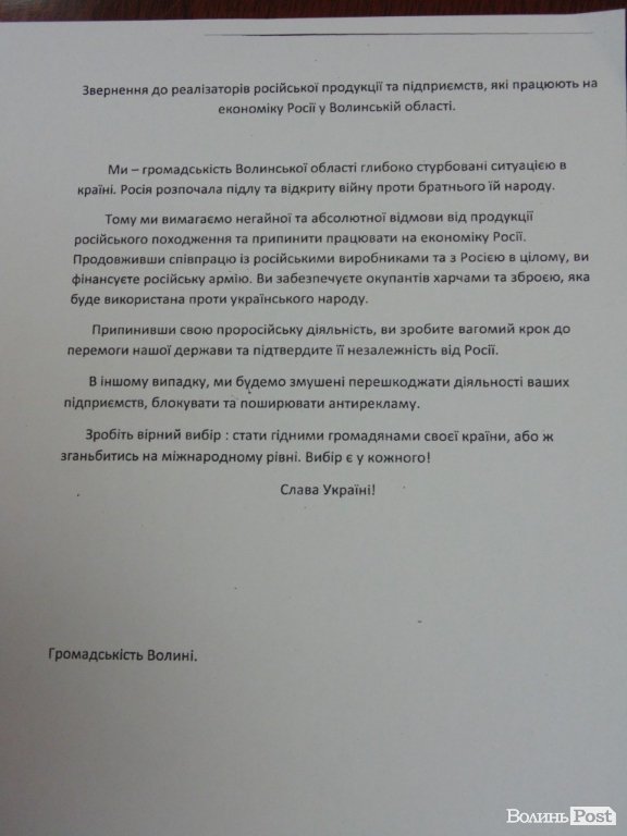 «Тим самим, що ми будемо блокувати одне маленьке російське підприємство в Луцьку і до нас приєднаються у всіх містах, то ми завдамо разом суттєвих збитків для Росії. Вони побачать, що їх не підтримують і зроблять свої висновки», – висловився Олександр Буряк.