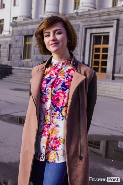 Дівчину, з якою ви познайомитеся сьогодні в нашій рубриці, звати Олександра. Її ми побачили поблизу головного корпусу СНУ ім. Лесі Українки. Дівчина розповіла трішки про себе.