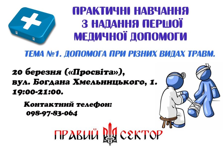 Темою для цього вишколу стане допомога при різних видах травм, - повідомили у групі в соціальній мережі «Правого сектору».