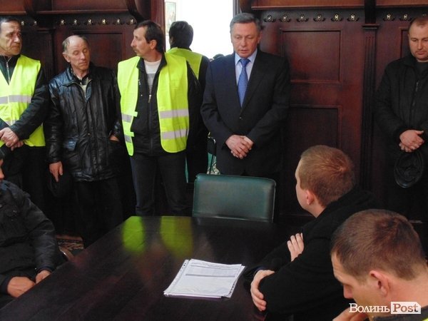 Працівники підприємства «Луцьк Комунал Сервіс» на чолі з директором Олегом Стернійчуком прийшли до луцького міського голови Миколи Романюка вимагати повернути борги.