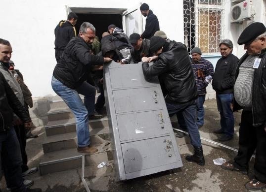 Російські окупанти та радикальна частина самооборони Криму та Севастополя під час штурму штабу командування ВМС ЗС України захопили адміністративні будівлі.