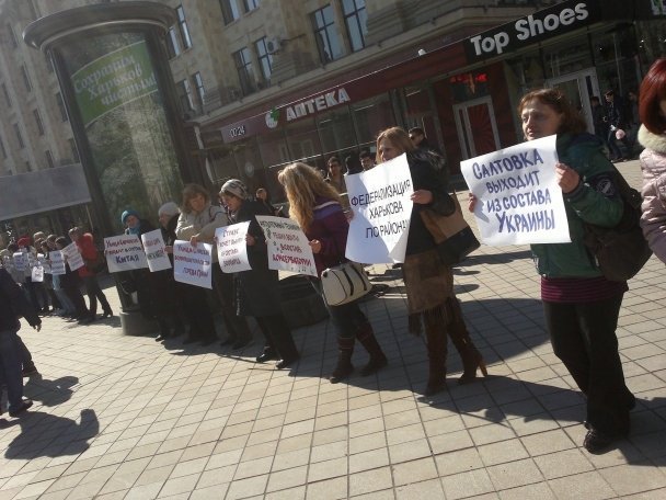 Жителі міста вийшли до однієї з центральних станцій метро з плакатами, зміст яких висміював сепаратизм і анексію Криму Росією, - пише ТСН.