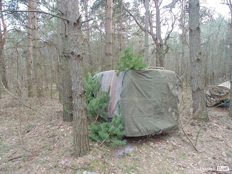 На території табору «Правого сектору» кілька наметів та вогнище, замасковане гілляками. Бійці мають із собою вогнепальну зброю (запевняють, що всі дозволи є), біноклі, бронежилети, ножі та іншу амуніцію. Їжу готують на відкритому вогні у казанках.