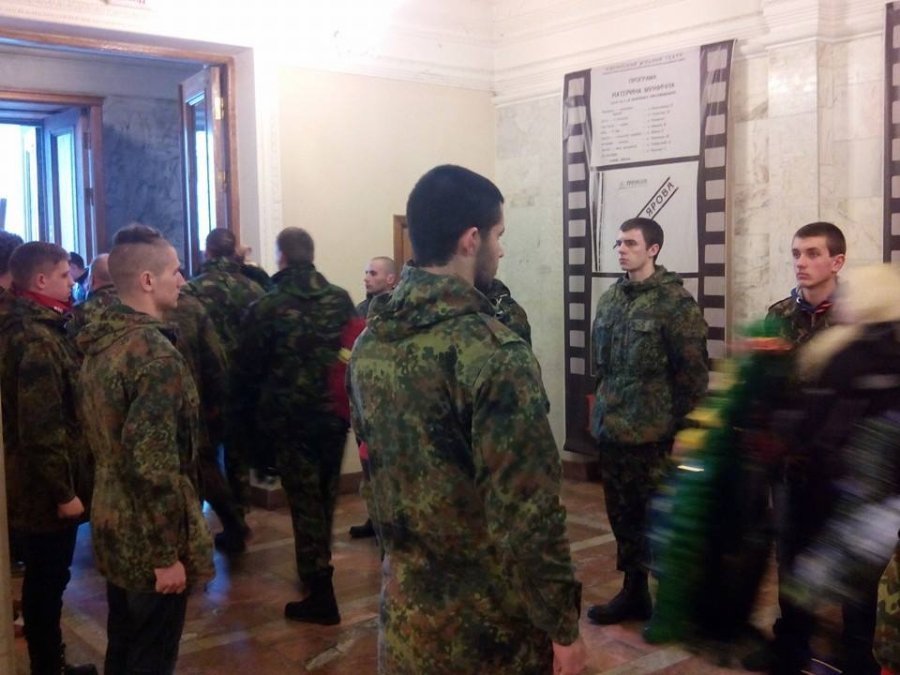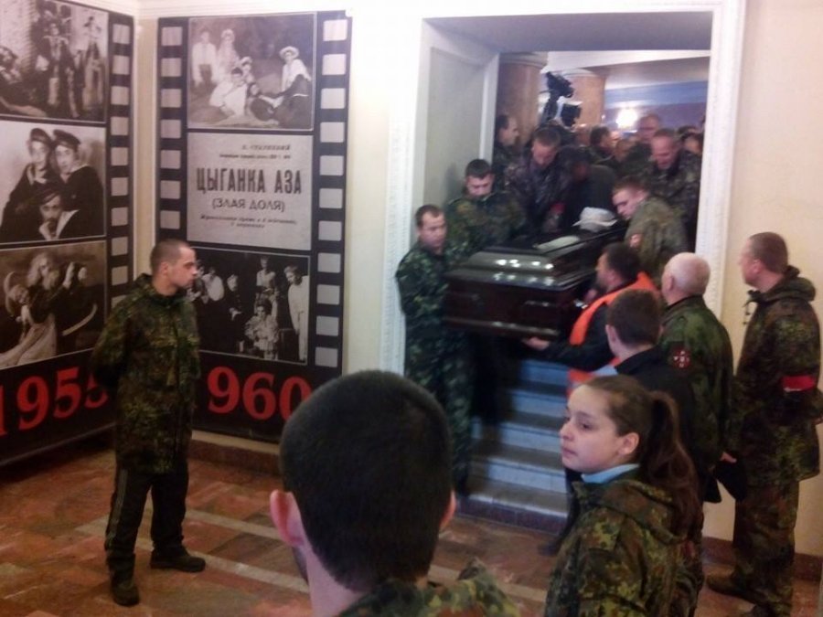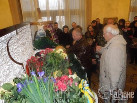 У Рівненському облмуздрамтеатрі сотні рівнян прощаються з Олександром Музичком, більше відомим як Сашко Білий, якого вбили два дні тому під час спецоперації МВС.