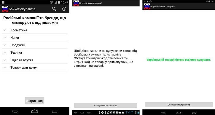 У цьому допоможе новий додаток «Бойкот окупантів», яке здатне в лічені секунди розпізнати, в якій країні виробили той чи інший продукт. Програма сканує штрих-код і порівнює його з постійно поповнюється базою даних російських компаній і «брендів -перевертнів», які прикидаються «неросійськими».