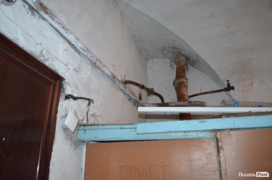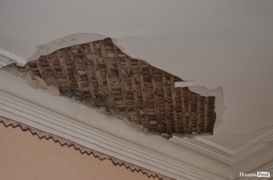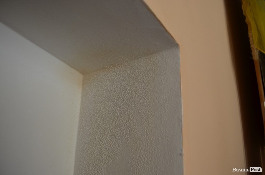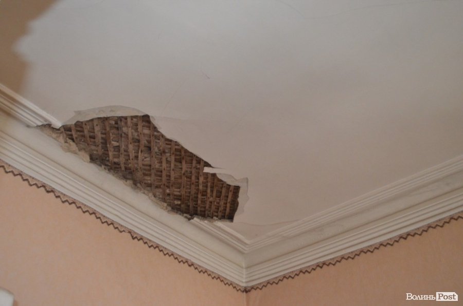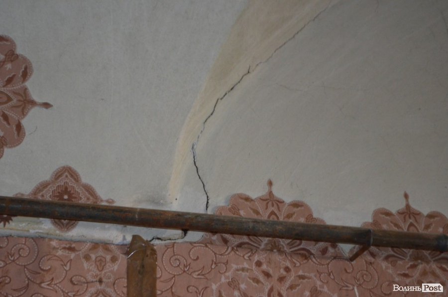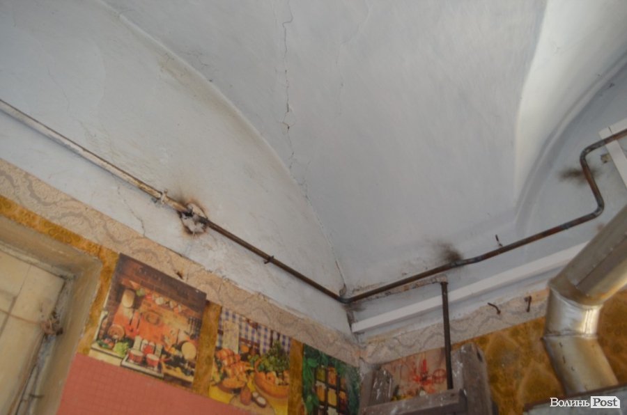 Не краща ситуація і в середині приміщення. Стіни та стелі помережані павутинкою тріщин та плямами грибка.