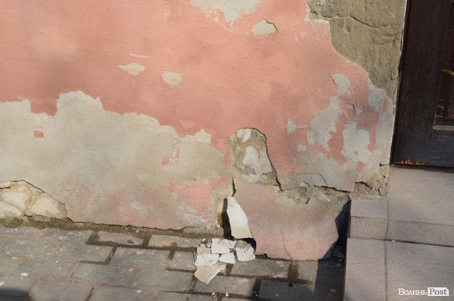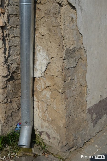 Навіть вигляд фасаду цієї пам’ятки архітектури бажає кращого, хоч і ремонтували його лише два-три роки тому. Одна з найбільших проблем – грибок, що практично знищує стіни, які, зі слів мешканців, сягають півтораметрової товщини. Місцями тиньк обвалився так, що аж просвічується цегла.