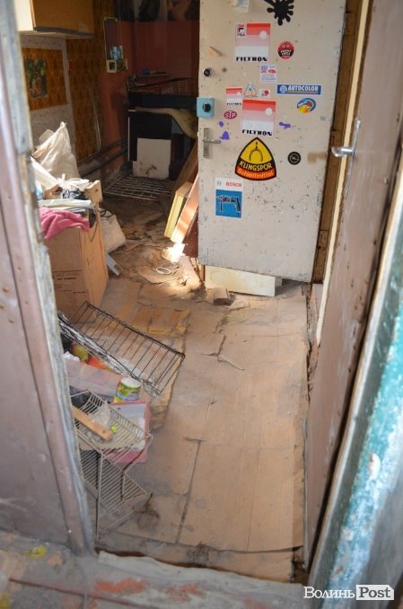 Як зазначає Денис Деркач, проблема із тим, що «впала» підлога у квартирі сусідки, – через завал зводу підвалу. «Під підлогою – арка в підвалі, і в будь-який час воно може провалитися», – додає сама Антоніна Кунець.