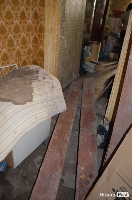 Розповідає вона і про свою квартиру: «Я поїхала до свекрухи жити, бо в нас провалилася підлога. Балки були на підлозі, прогнили всі. Під підлогою був підземний хід, ми його засипали, все провалилося вниз. Стіни мокрі. Все гниє і пліснявіє. Усі речі через вологість смердять чортом. Я тут не знаю, що робити».