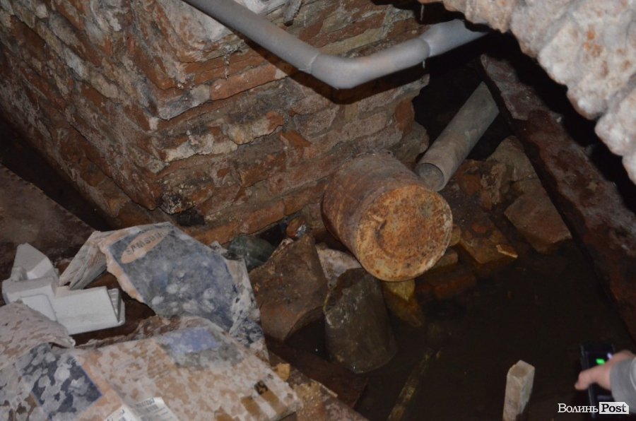 До того ж, у підвалі, який зі слів Дениса Деркача сягає глибини двох поверхів униз, постійно стоїть вода. «Я думаю, що за останні декілька років, це найменший рівень води. Зараз вода впала, а зимою доходить до метра», – показує він.