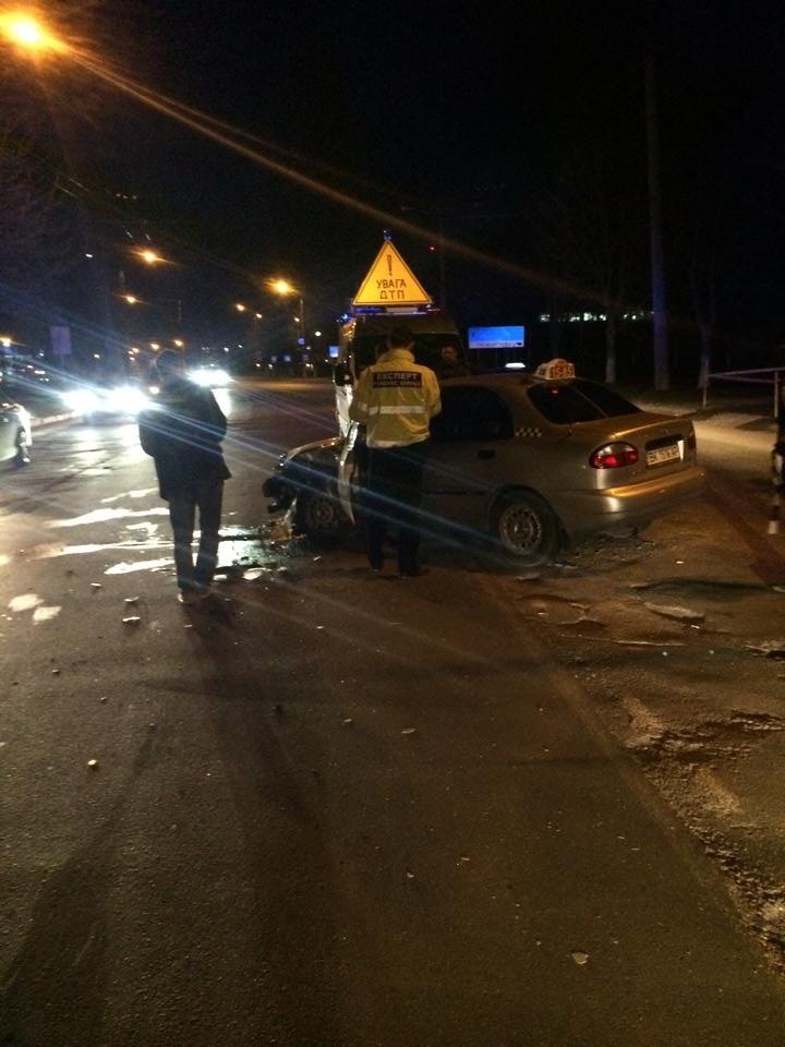 У таксі був пасажир, якого відразу забрала швидка, після чого вже водій який був у стані алкогольного сп'янніння почав втікати та був затриманий очевидцями ДТП, а самооборона під'їхала вже пізніше.