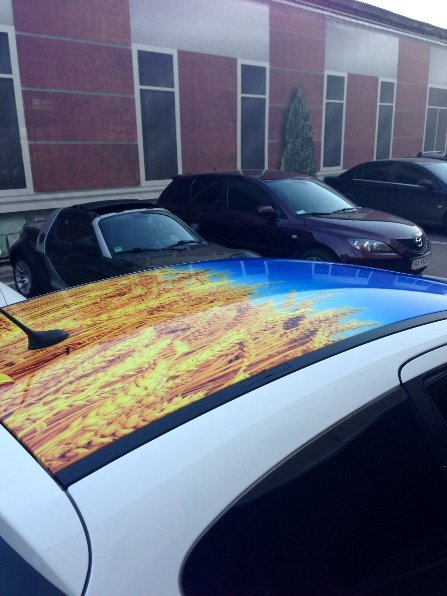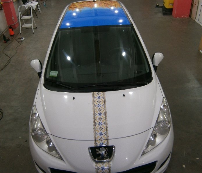 Останній з них - Peugeot 208, господар якого не тільки пустив «українську смугу» через кузов, але і перетворив дах прапором України у вигляді пшениці і неба.