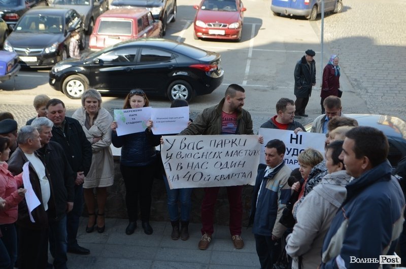 Нагадаємо, йдеться про зелену зону, яка розташована на розі вулиць Конякіна та Гордіюк. У 2010 році її віддали під забудову ПрАТ "Луцький домобудівельний комбінат". Від того часу місцеві мешканці вимагають в міськради розірвати угоду з товариством. Мовляв, забудова знищить фактично єдиний парк та стадіон в мікрорайоні.