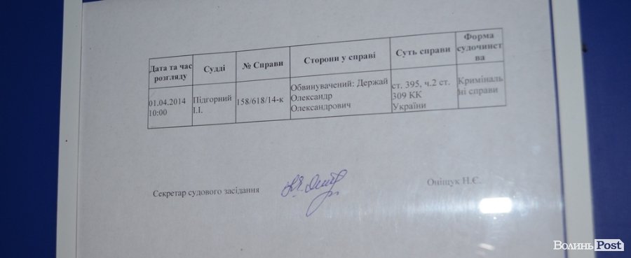 «Сьогодні він мав розглядати справу о 10 годині. І ця правова колізія дозволяє оцій фігурі заходити в зал суду і здійснювати правосуддя іменем України. Ми цього не підтримуємо», - заявив один із представників Волинської Самооборони Майдану Андрій Омельчук.