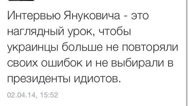 Нагадаємо, 2 квітня колишній президент України дав інтерв'ю, під час якого говорив про Майдан та допомогу Росії.