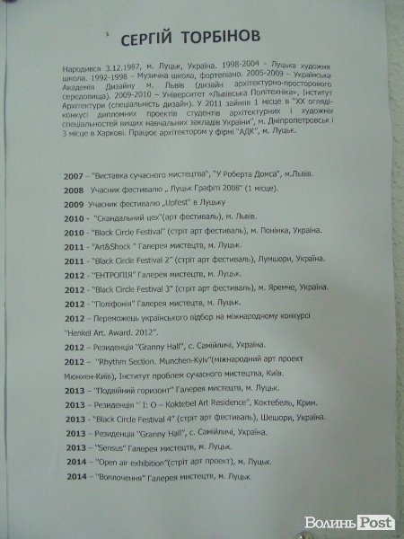 "Голова правління Волинської обласної організації Національної спілки художників України Володимир Марчук зазначив, що цією інсталяцією продовжується традиція незвичних молодіжних виставок, за допомогою яких виховують нового глядача." ----Виховують нового гладача!!!!! НАРЕШТІ!!! В ЛУЦЬКУ !!!!ЛЮДИ-ЗНАЙОМТЕСЬ-НОВЕ ДЛЯ ВАС І ТАКЕ ВІДОМЕ У ВСЬОМУ СВІТІ СУЧАСНЕ МИСТЕЦТВО!!ГЛИБОКЕ,ЗМІСТОВНЕ,ШОКУЮЧЕ,МІНЯЮЧЕ СВІДОМІСТЬ,ЯКЕ ЗАСТАВЛЯЄ ДУМАТИ,РУХАТИСЬ ВПЕРЕД І БАЧИТИ ВСЕ У МІЛЬЯРДІ ВІДТІНКІВ.