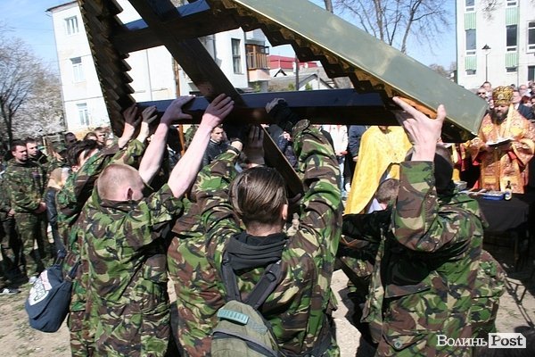 У чотирьох кутах від хреста в землю заклали по каменю. Перший заклав керівник волинського Правого сектору Павло Данильчук, другий – голова Волинської ОДА Григорій Пустовіт, третій – міський голова Микола Романюк, четвертий – директор ДКП «Луцьктепло» Олександр Киричук.