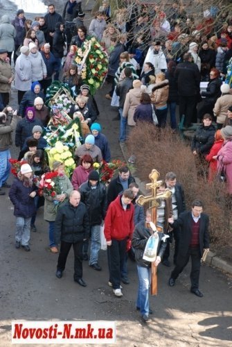 Близько 12:00 труну винесли з будинку у Миколаєві, де вона жила останнім часом з матір’ю і поставили біля входу – з нею прощалися під спів церковного хору. Всупереч побоюванням, ніхто не перешкоджав фото-і відеозйомці - хто що хотів, те й знімав.