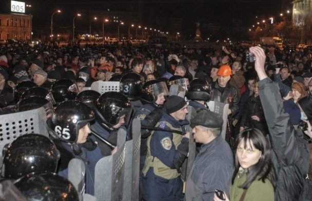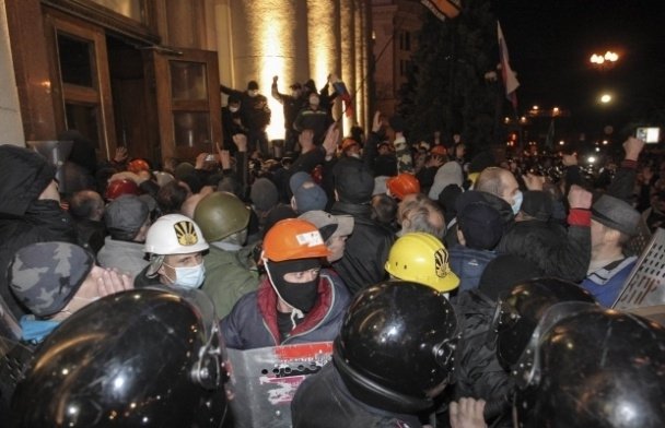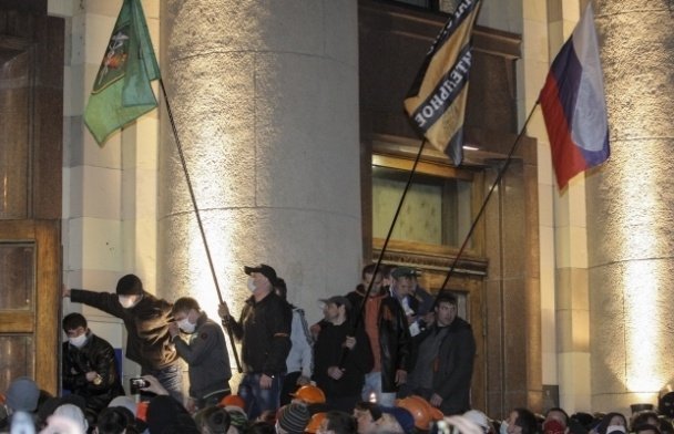 6 квітня пізно ввечері у Харкові сепаратисти у масках, озброєні палицями, прорвали кордон міліції навколо Харківської ОДА.