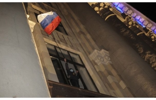 Штурму передував мітинг сепаратистів перед стінами ОДА. Над приміщенням майорів російський триколор.