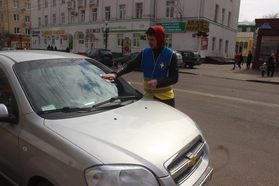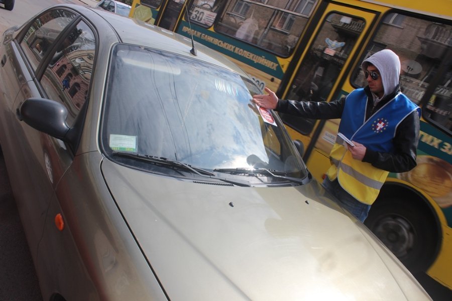 Активісти "Автомайдану Волинь" знову провели рейд центральною вулицею міста. Вони клеїли "стопхамки" на лобове скло автомобілів, припаркованих із порушеннями правил.