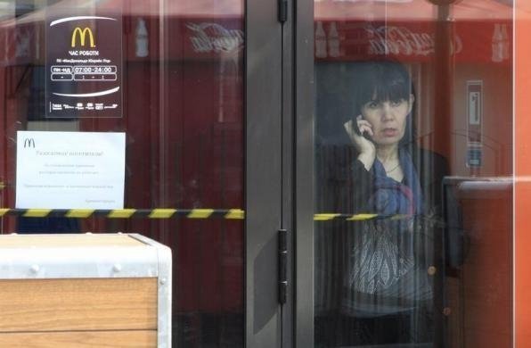 Зокрема на знімках є жінка, яка розмовляє по телефону в приміщенні зачиненого McDonald'sу у Сімферополі. Найбільша в світі мережа ресторанів швидкого харчування - американська корпорація McDonald's - оголосила в п'ятницю, 4 квітня, про тимчасове закриття своїх філій в Криму.