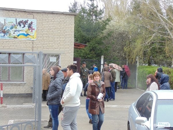 Чимало родичів та друзів зібралися біля комісаріату, щоб провести майбутніх військовослужбовців та передати їм необхідні речі.