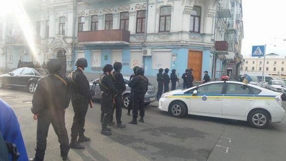 Офіс Компартії, в якому зараз знаходяться люстраційний комітет «Ніколи Знову» та «Канцелярська сотня» оточили силовики.