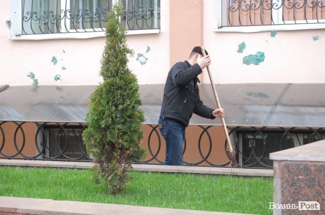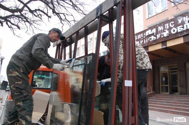 У «Самообороні» знайшли охочих допомогти із наведенням ладу із вікнами у приміщенні УМВС Волині та території навколо нього.