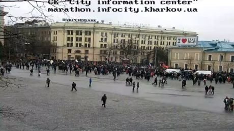 Після закінчення віче частина «євромайданівців» вирушила на площу Свободи. Проросійські активісти йшли по Мироносицькій, ‒ пише Українська правда з посиланням на Інтерфакс-України.