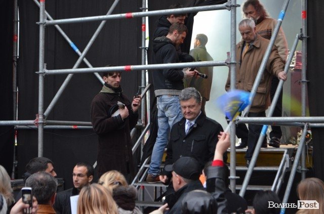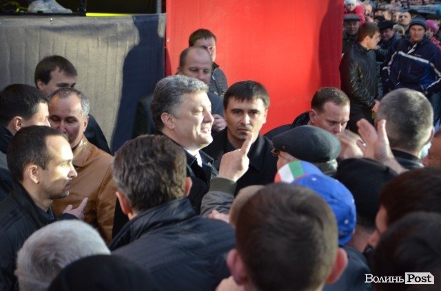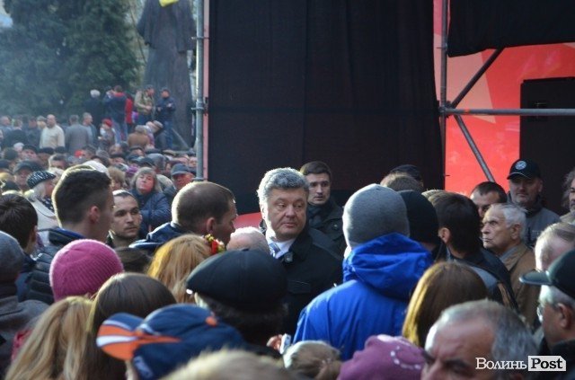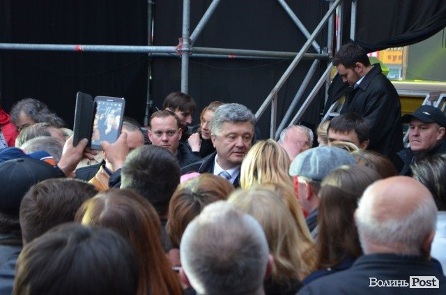 На закінчення Порошенко зійшов зі сцени та поспілкувався із людьми, потискуючи їм руки.