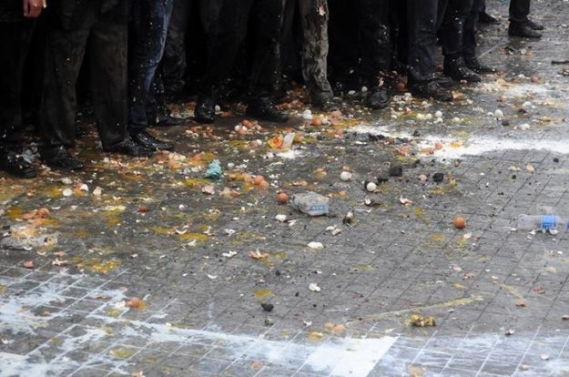 Сепаратистів у Запоріжжі 13 квітня цілий день тримали в облозі і не підпускали до них підкріплення, закидуючи яйцями, борошном та пакетами з молоком.