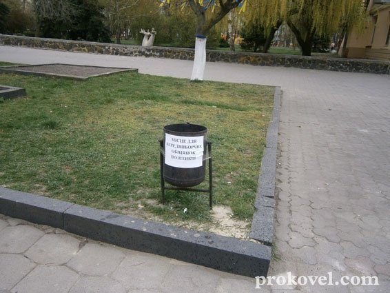 Смітники вздовж бульвару Лесі Українки хтось із дотепників обгорнув листівками з надписом «Місце для передвиборчих обіцянок політиків», - пише ПроКовель.