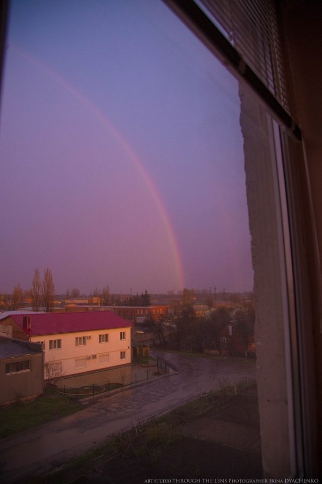 Ввечері у понеділок, 14 квітня, у Луцьку після сильного, похмурого дощу з’явилася веселка, а місто при заході сонця «видало» гарний краєвид.