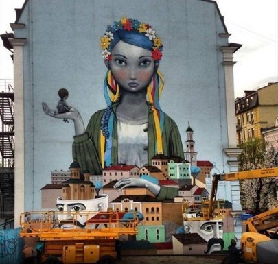 Нещодавно на Андрієвському Узвозі, у центрі Києва, з’явився патріотичний стріт-арт;