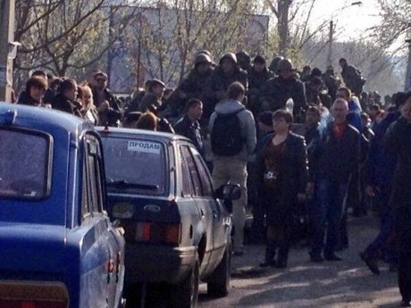 «Люди мирно спілкуються з військовими в Краматорську, заблокували їм рух. Це десантура з Дніпропетровська», ‒ зазначає він.