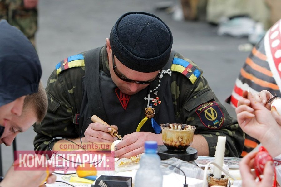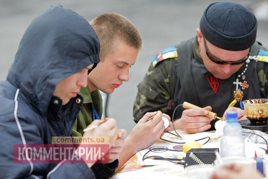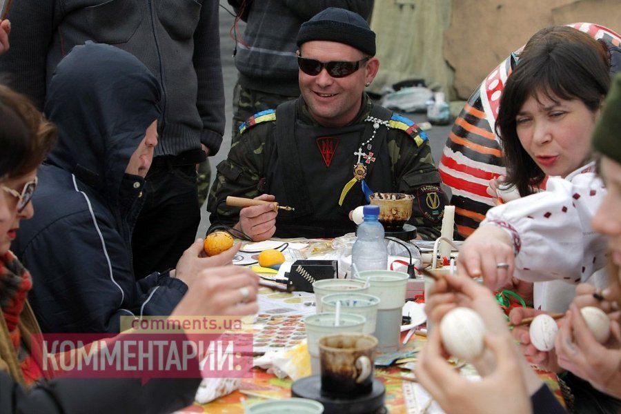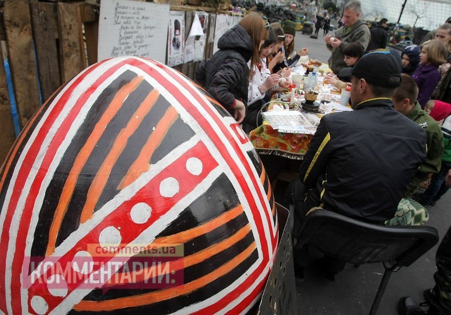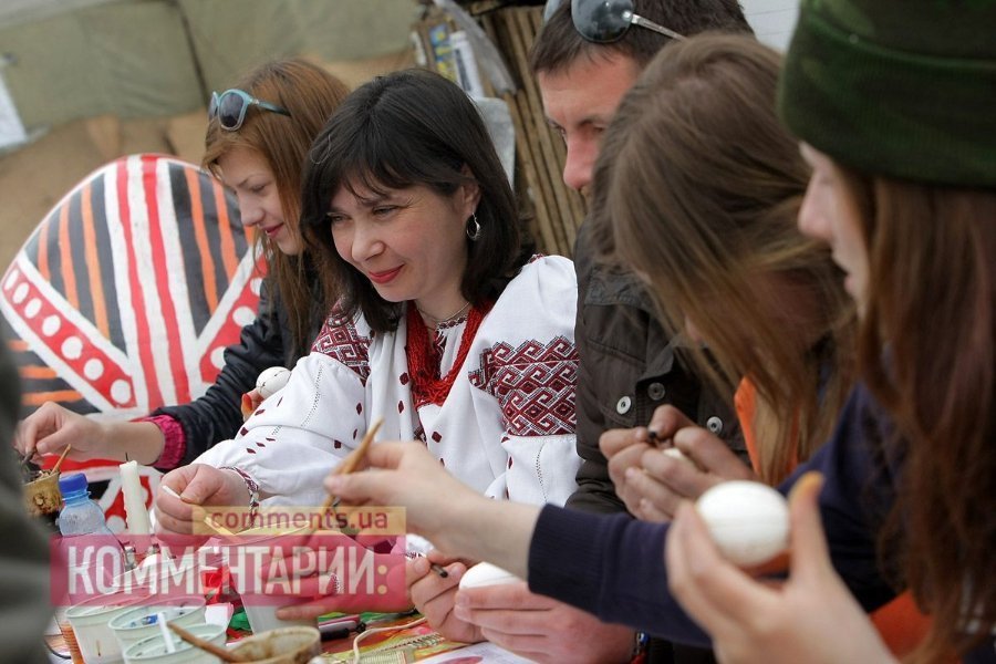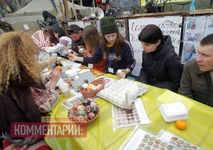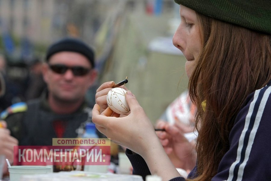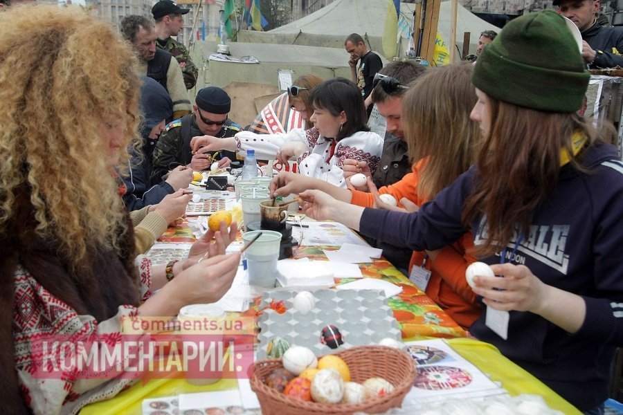 У Києві на Майдані революціонери готуються до Пасхи: активісти розписували яйця.
