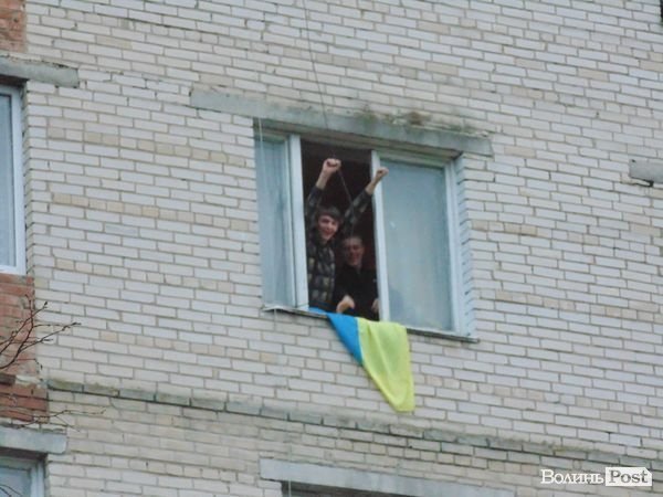 Близько 100 студентів Луцького національного технічного університету влаштували флешмоб, щоб морально підтримати українську армію. Вони одночасно відкрили вікна гуртожитку на вулиці Даньшина та проспівали Гімн України.