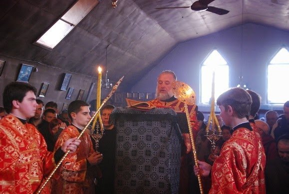 Після прочитання Євангелія зі словом проповіді до присутніх звернувся клірик Свято-Покровського кафедрального храму архімандрит Аліпій (Сапіга).