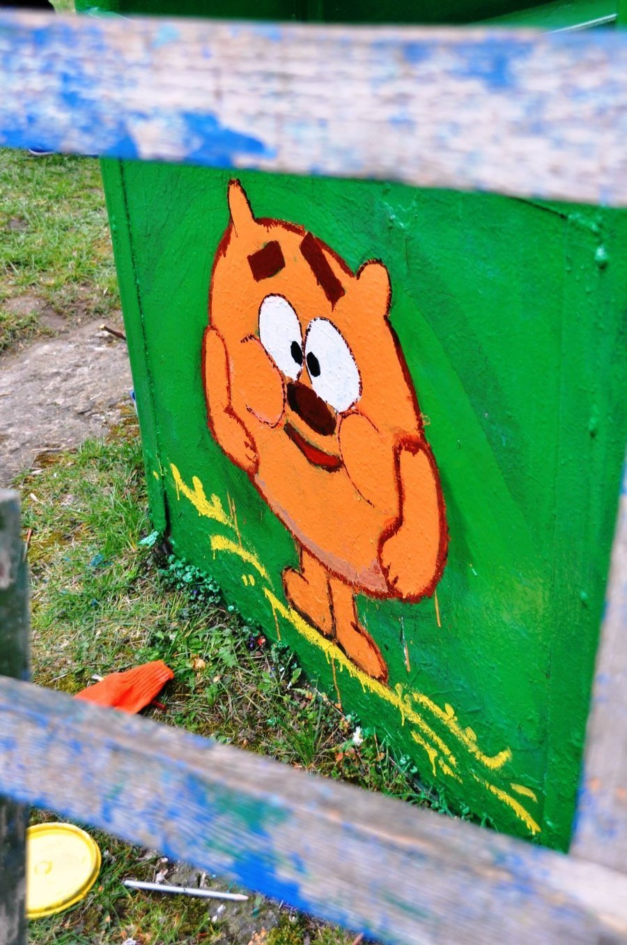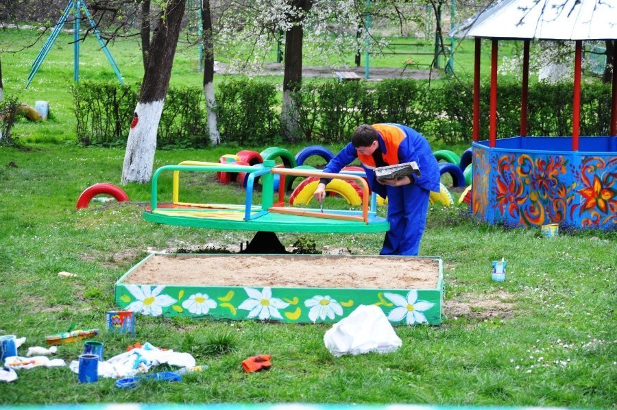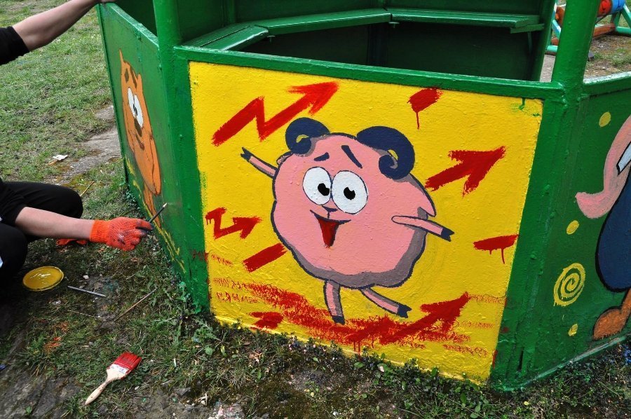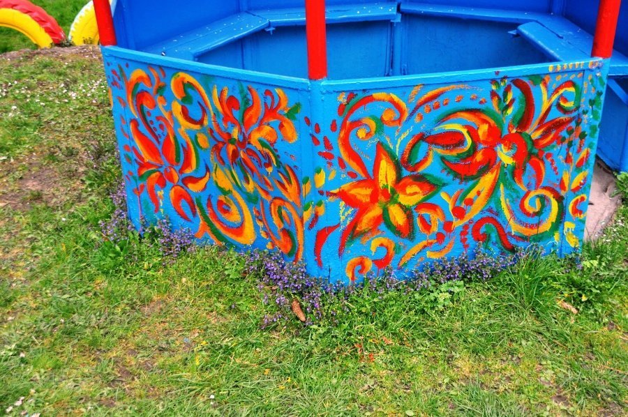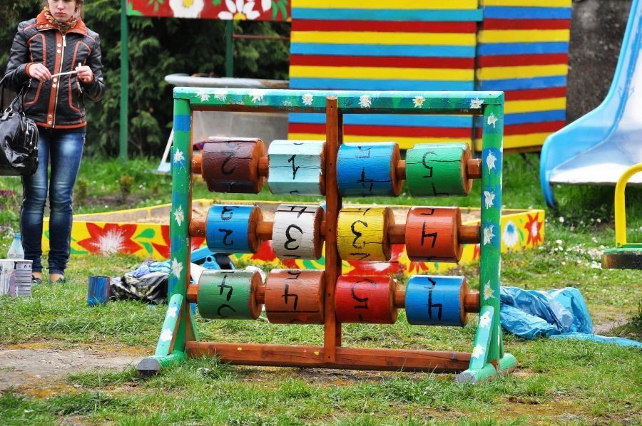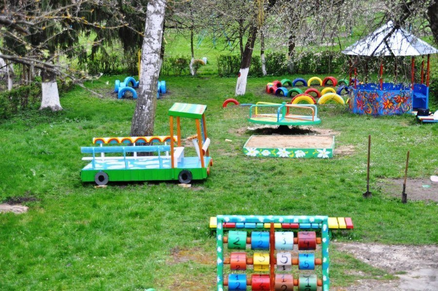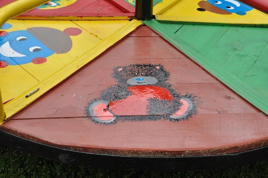 В нас в Україні, та й на всій території колишнього СРСР, дітей вважають за дибілів, і тому фарбують все різнокольоровою фарбою. Є багато прикладів дитячих майданчиків в яких не використовується така кількість різнокольорової фарби. Я розумію, що ці конструкції вже старі, але все ж можна подумати як зробити гарно і по європейськи.