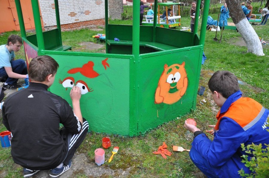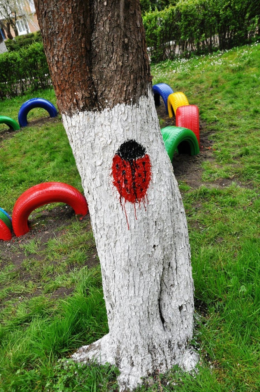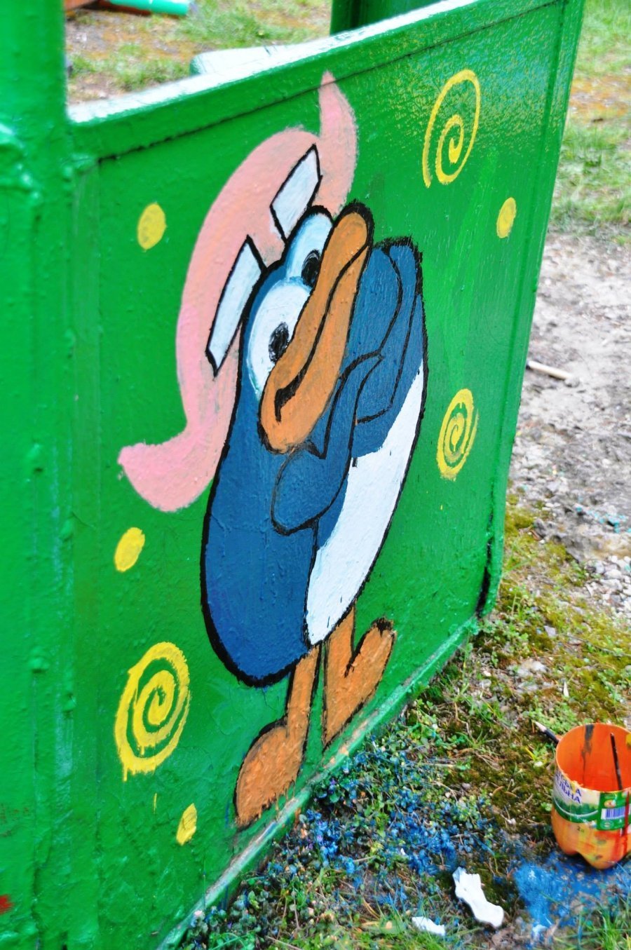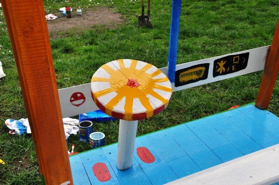В нас в Україні, та й на всій території колишнього СРСР, дітей вважають за дибілів, і тому фарбують все різнокольоровою фарбою. Є багато прикладів дитячих майданчиків в яких не використовується така кількість різнокольорової фарби. Я розумію, що ці конструкції вже старі, але все ж можна подумати як зробити гарно і по європейськи.