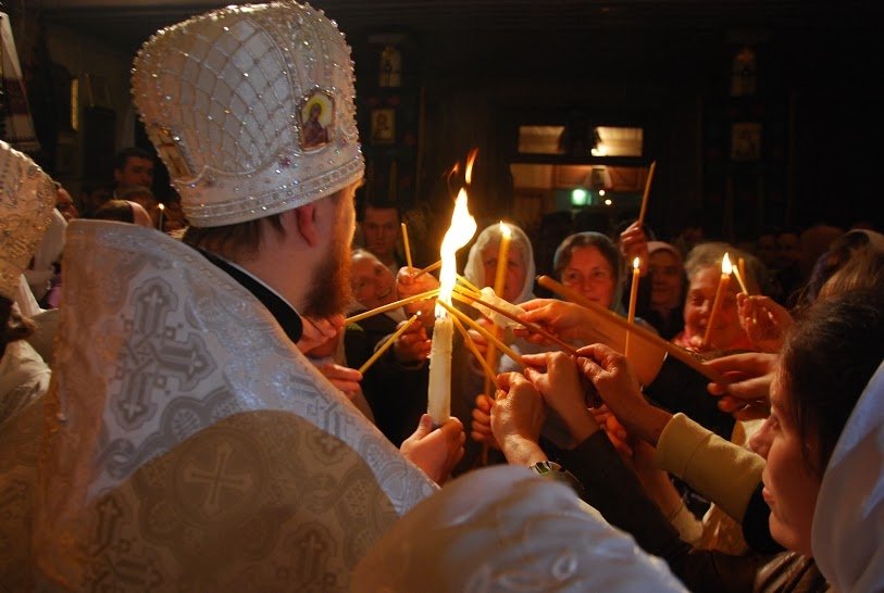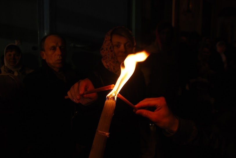 В Пасхальну ніч у Луцьк до Свято-Покровського кафедрального храму привезли Благодатний вогонь з Єрусалиму.