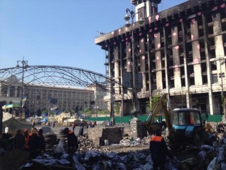 У Києві на Майдані Незалежності почали збирання і приведення до ладу барикад.