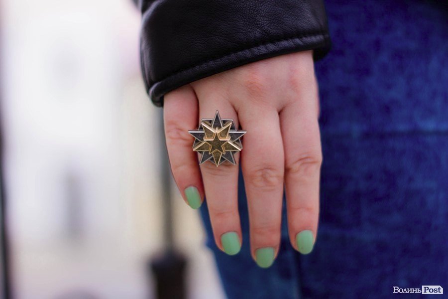 Найперше, що падає в око, коли дивишся на нашу героїню – це аксесуари. Найгарніша це каблучка з зірками – оригінальна та стильна.