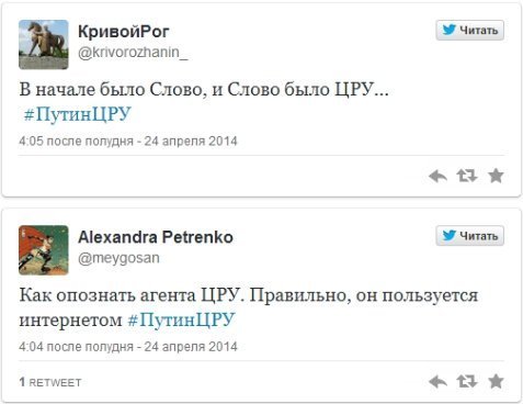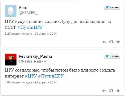 В українському сегменті сервісу мікроблогів Twitter почали активно глузувати над тим, що все у цьому житті – проект ЦРУ, а Росія з цим бореться.