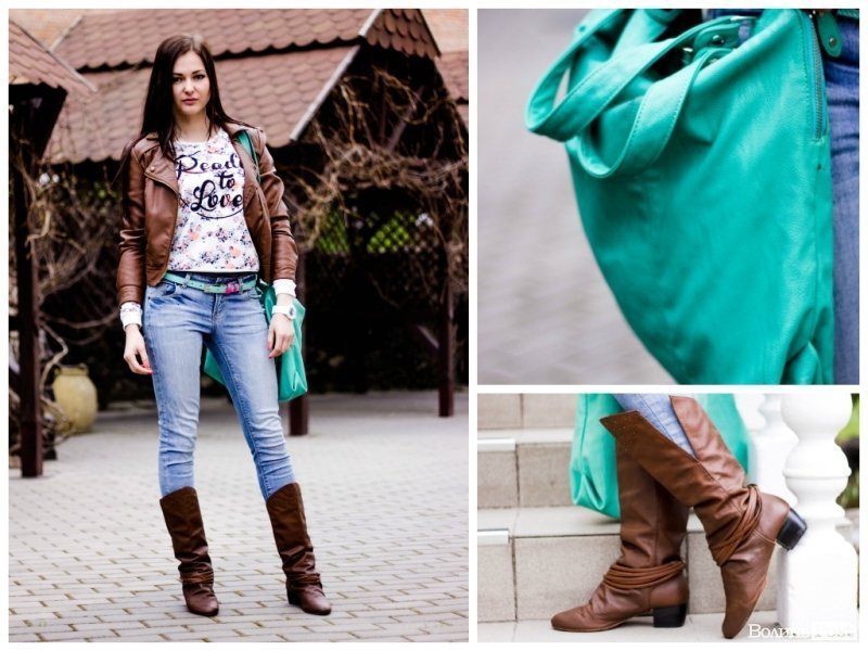 На фото наша героїня одягнена у куртку і чоботи від BERSHKA, кофтинку STRADIVARIUS, джинси від GAP. У образі присутні також і аксесуари, серед який окуляри, сумка, комплект з підвіски і сережок від SWAROVSKI, та годинник марки WATCH.