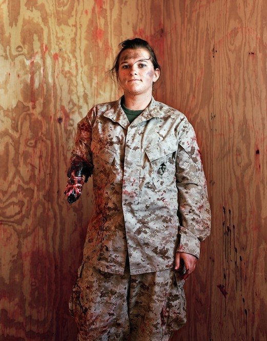 Штатська Кріста Гельян в ролі пораненої в результаті спрацьовування саморобного вибухового пристрою, Повітряно-наземний бойової центр корпусу морської піхоти, Ваді-аль-Сахара, Каліфорнія, 2008 рік