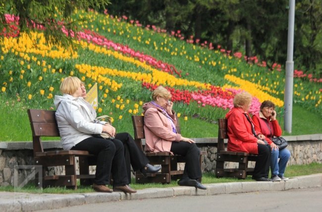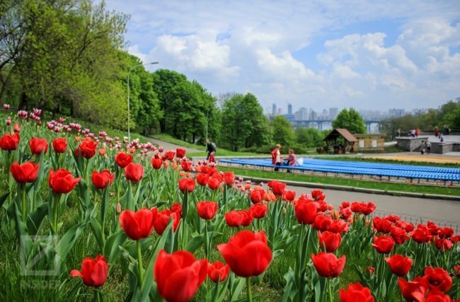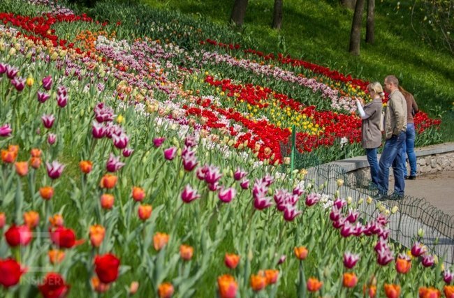 На Співочому полі Печерського ландшафтного парку Києва відкрили виставку тюльпанів "Кольори весни".