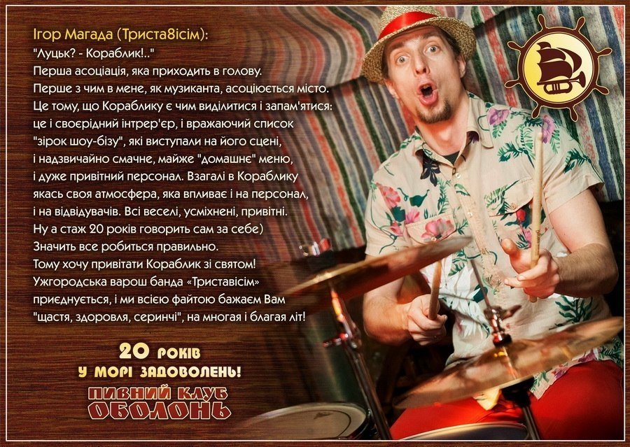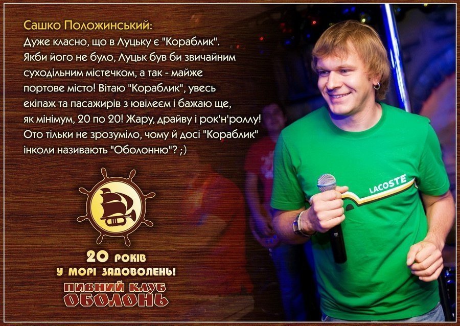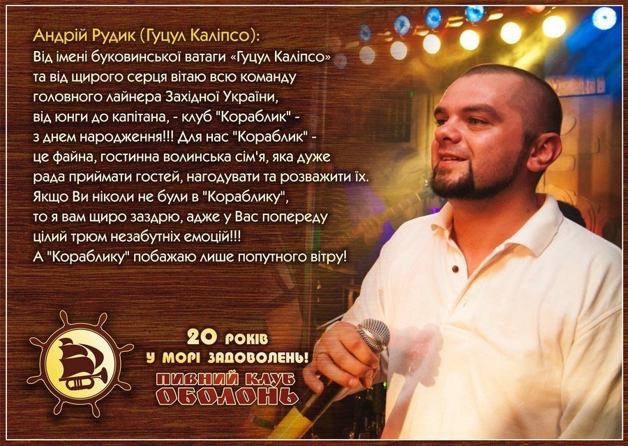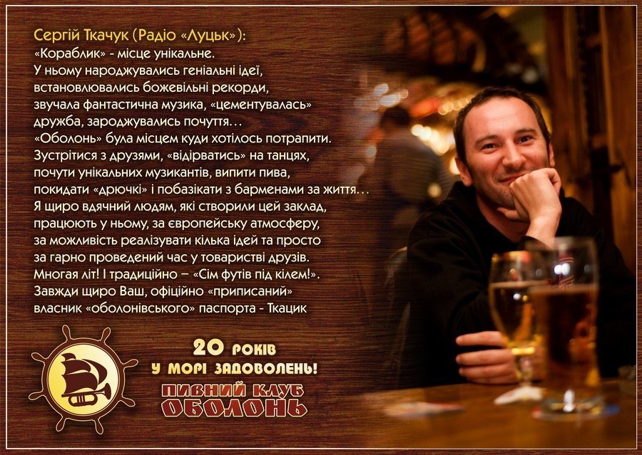 Музиканти, громадські діячі, журналісти привітали луцький пивний клуб «Оболонь» із 20-річчям.