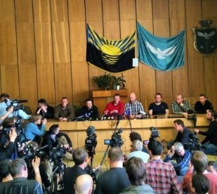 Захоплених військових інспекторів у Слов'янську показали пресі. ФОТО